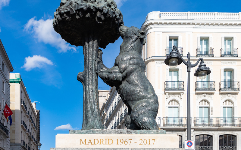 The statue of Bear and the Strawberry in Puerto del Sol