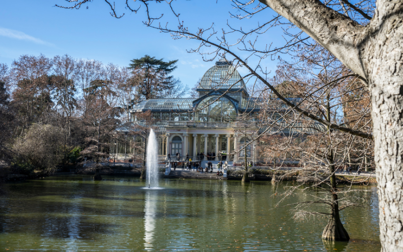 Retiro Park's famous lake and The Palacio de Cristal