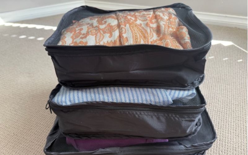 Packing cubes are the difference between an “organised traveller” and “the person rustling through plastic bags at 2AM while everyone else is trying to sleep.” They keep your clothes sorted, make repacking painless, and help you find what you need without turning your entire bag into a garage sale.