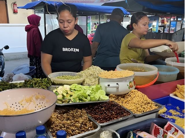Beyond the food stalls, there are tables piled high with fresh tropical fruit, herbs, vegetables, and local snacks you’d never find in a restaurant. It’s colourful, chaotic, and perfect for budget‑friendly travellers who love trying everyday Indonesian flavours straight from the source. You can also check out heaps of other amazing reviews.