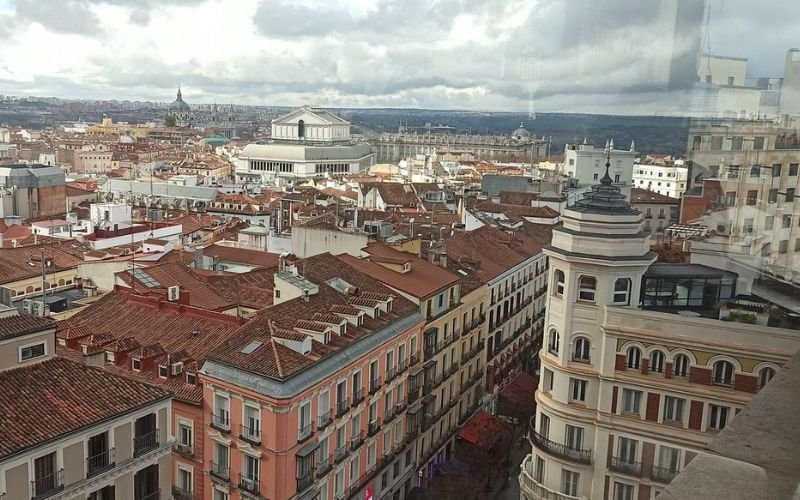 If you’re after sweeping views of Madrid without spending a euro, head up to the Gourmet Experience on the top floor of El Corte Inglés (department store) in Callao. It’s officially a food hall, but the real highlight is the glass‑walled seating area overlooking Gran Vía.