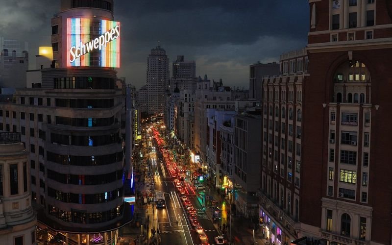 Just head toward Plaza del Callao, the square with the iconic Schweppes sign above the Capitol building.